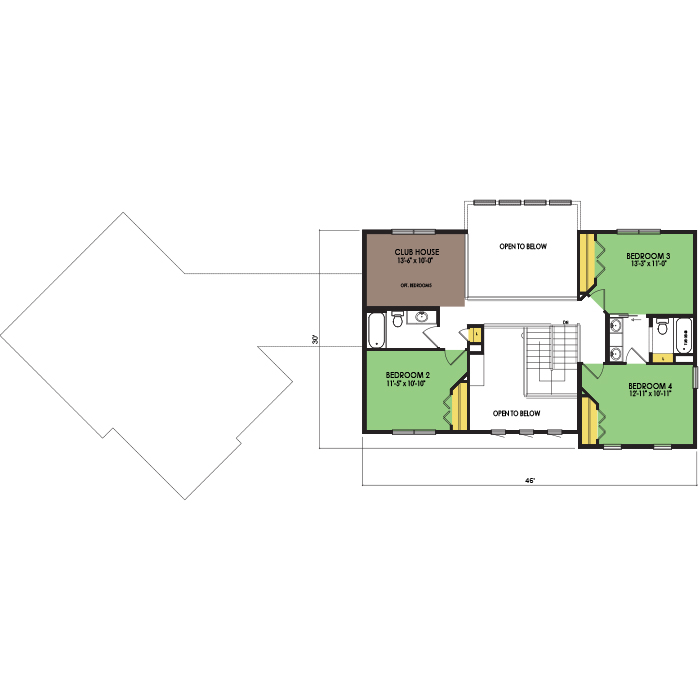 A part of our Vacation Series, the Temperance floor plan features 4 bedrooms and 3.5 bathrooms with a foot print of 96x42 feet and 2504 total square feet of living space. Floor Plan #VC365