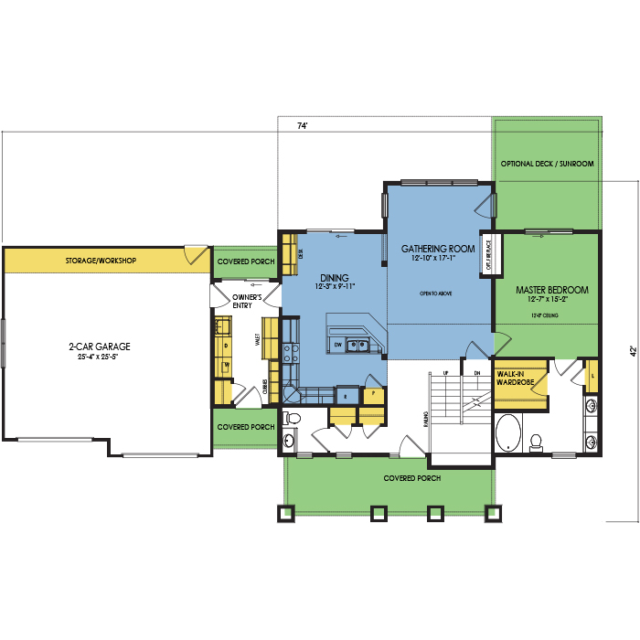 A part of our Vacation Series, the Wissota floor plan features 3 bedrooms and 2.5 bathrooms with a foot print of 74x42 feet and 2173 total square feet of living space. Floor Plan #VC341